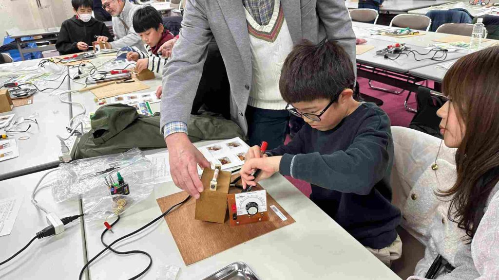 部品一つひとつを丁寧に組み立てながら、子どもたちは真剣な表情でラジオづくりに取り組んでいました。