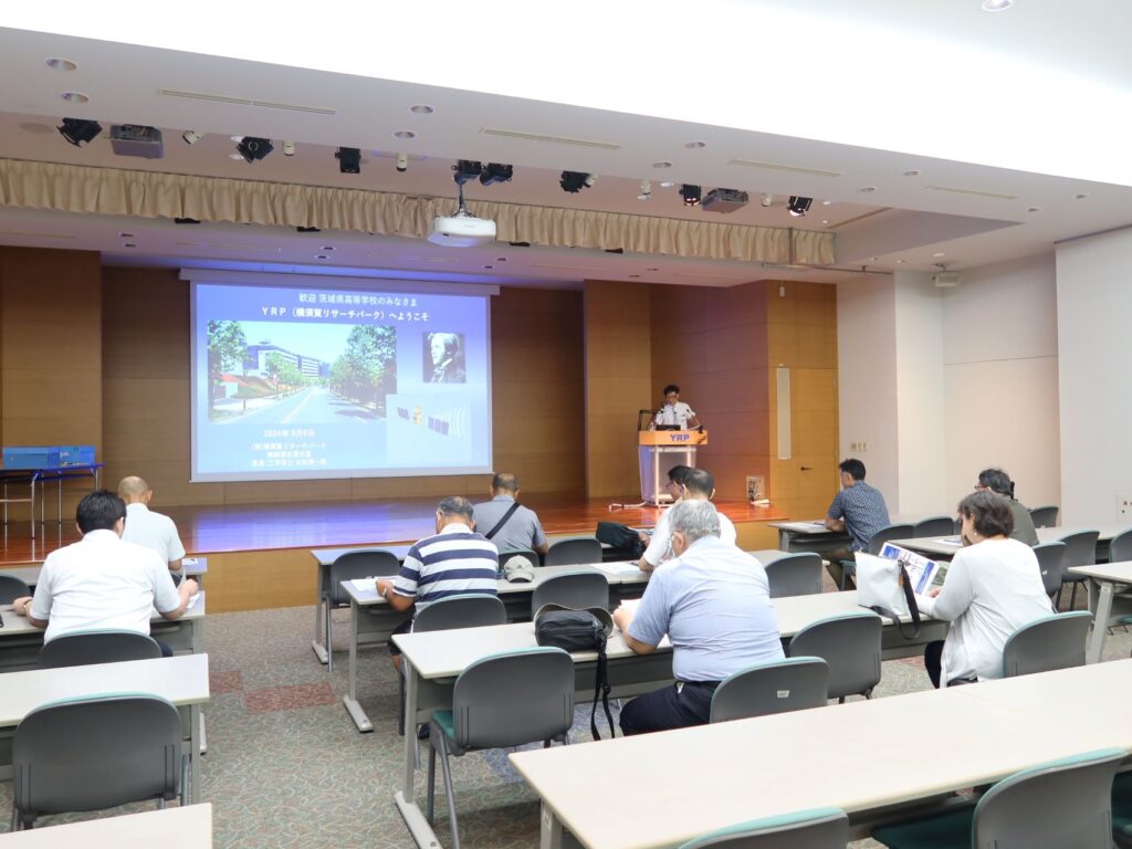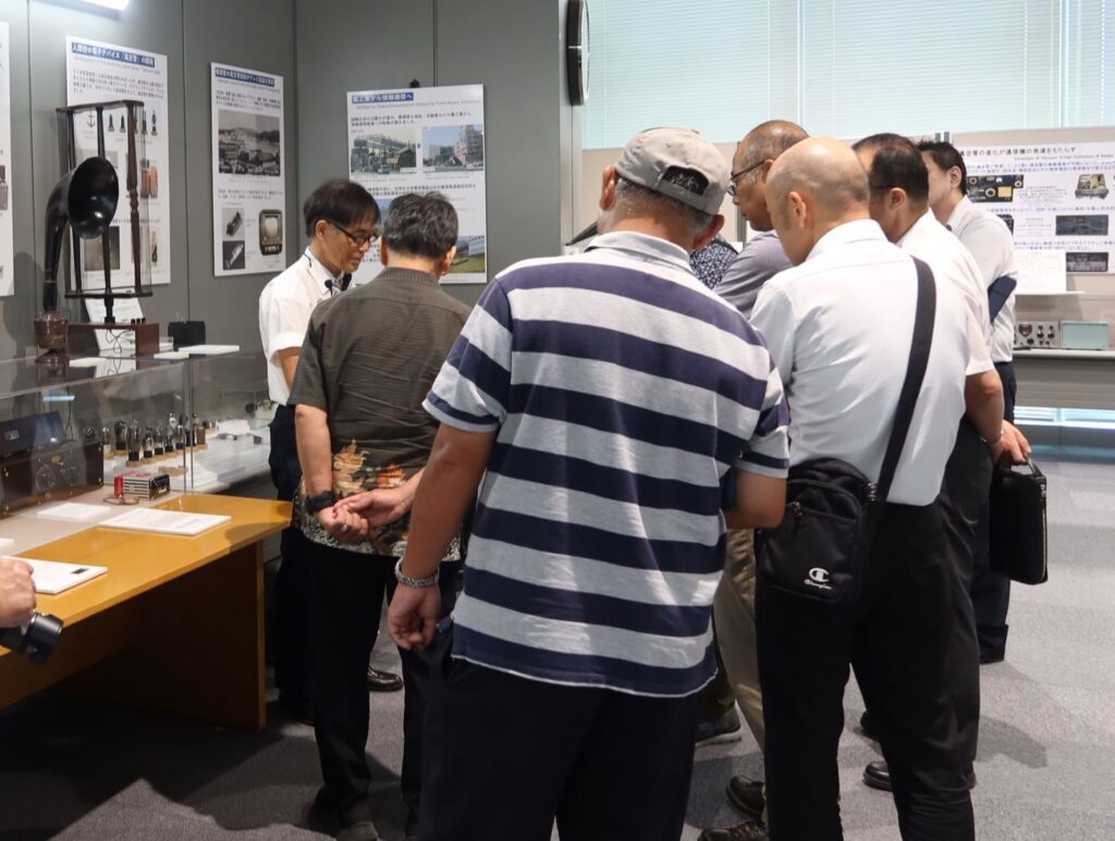 2024年8月9日(金)、茨城県高等学校教育研究会の皆様がYRP無線歴史展示室を見学されました。同研究会は、茨城県内にある高等学校などの教職員の方々が会員となって構成されており、教育研究を通して会員のスキルアップや高等学校教育の振興発展を図ることを目的とされています。今回は、研修先として横須賀市を調査するうちにYRPの成り立ちや企業集積の意義にもご関心をお持ち頂いたとのことで、公民部や地理部に所属される計10名の先生方が来訪されました。